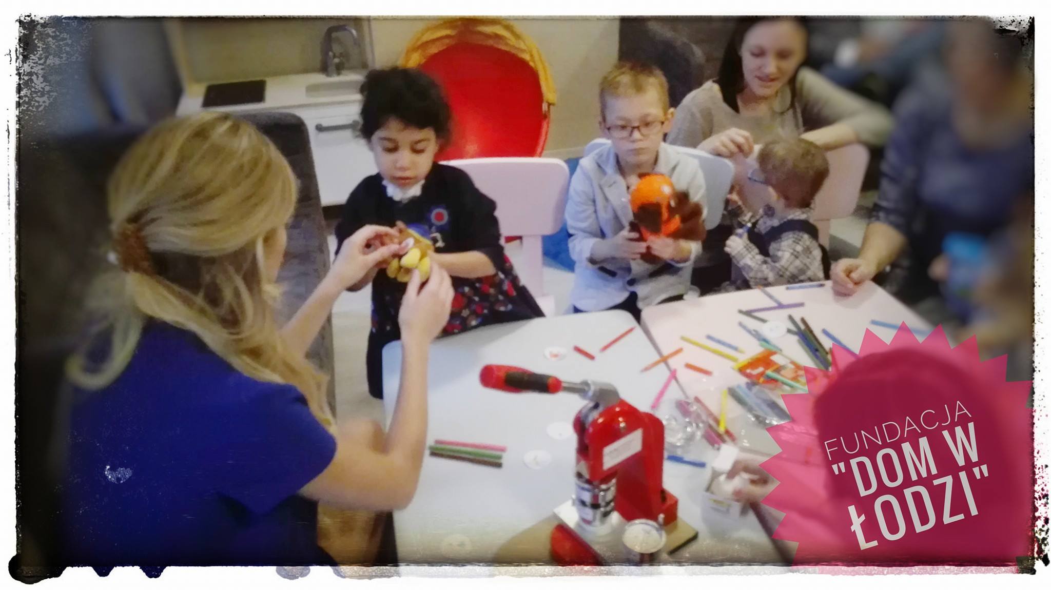 Co robiliśmy? Było trochę rysowania – wspólnie zrobiliśmy fantastyczne przypinki na szczęście! Mamy super maszynkę, którą kupiła nam ekipa wolontariuszy z firmy Takeda – i wspólnie tworzyliśmy kolorowe znaczki. Ależ to była zabawa! Były serduszka, kwiatki, misiek, bezludna wyspa… co tylko podpowiadała wyobraźnia 😉