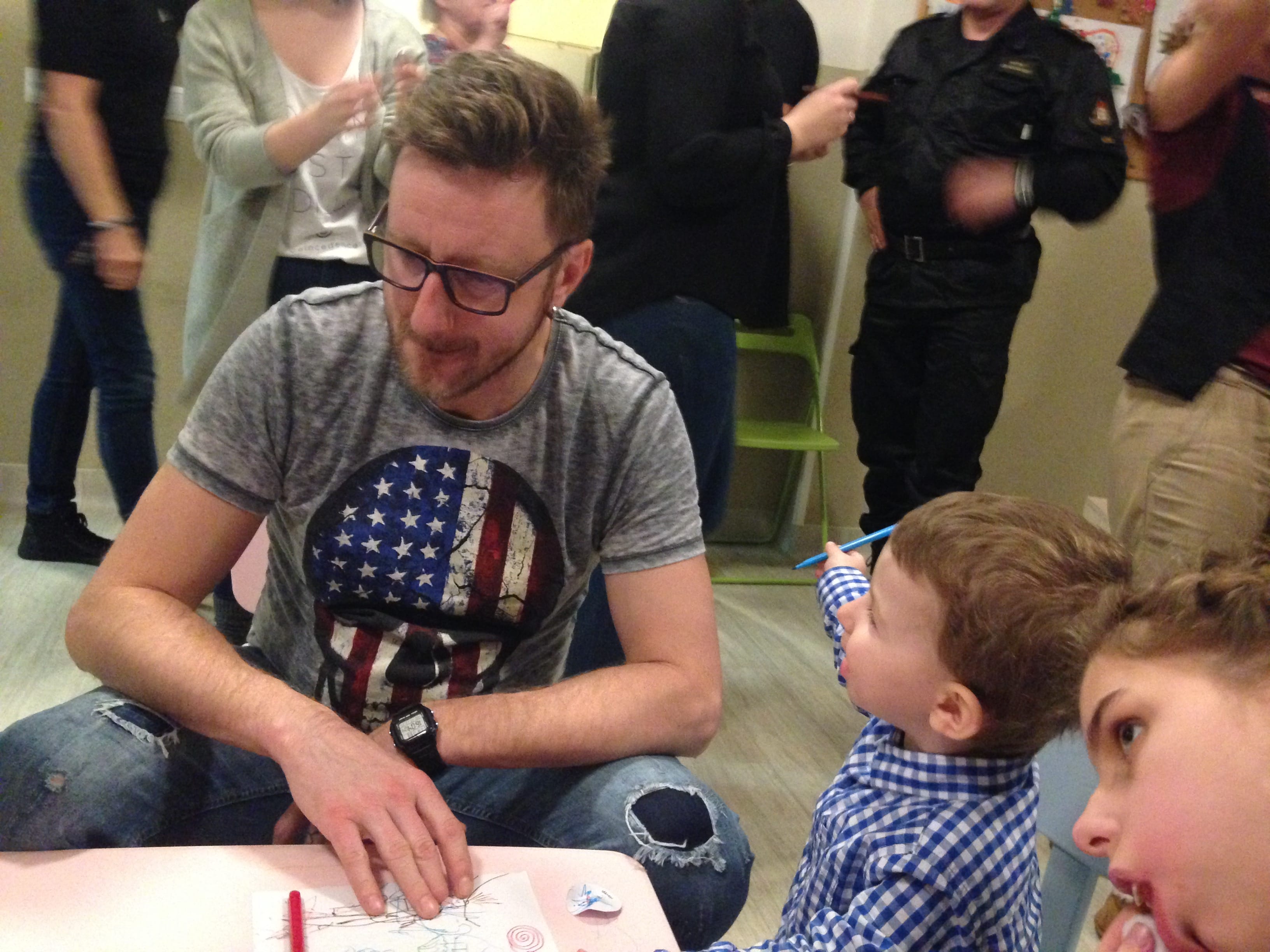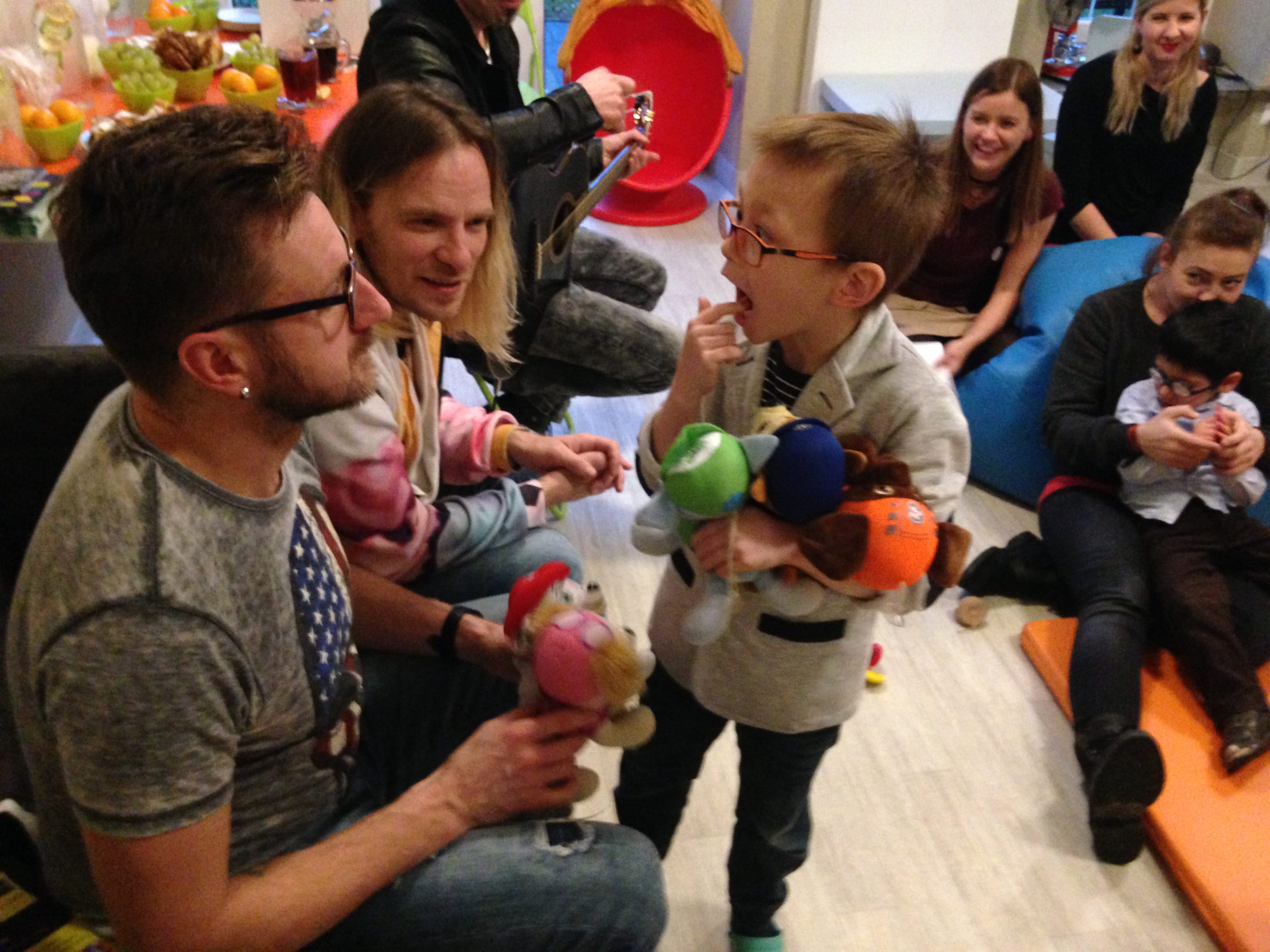 To był totalny czad! Odwiedzili nas muzycy z zespołu Video: Wojciech Luszczykiewicz, Paweł Stępień i Daniel Tyszkiewicz. Nie dość, że przynieśli nam masę prezentów, to jeszcze śpiewali z nami dziecięce piosenki, pozwolili naszym Chłopakom pograć na instrumentach i dali się zaprosić do wspólnego rysowania! Dzieci były zachwycone. A wszystkie Ciocie – pełne podziwu dla cierpliwości, oddania i zaangażowania! Panowie oddali się Dzieciakom w całości! No i obiecali ciąg dalszy… mamy nadzieję, że nawiązała się nowa, wspaniała Przyjaźń 😉