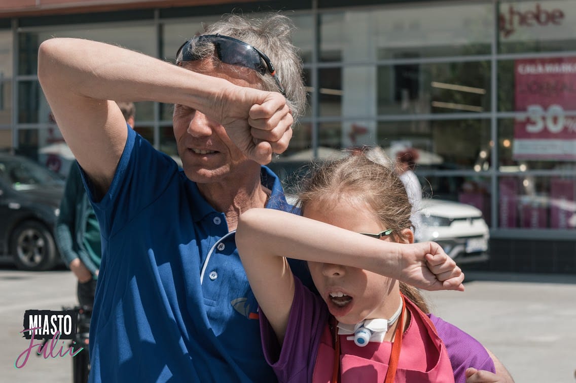 Jacek Chmiel jest m.in. dyrektorem sportowym Biegu Ulicą Piotrkowską. To właśnie On wręczył naszej Julii oficjalną akredytację fotoreportera. Jula miała specjalne „fory”. Pan Jacek zaprosił Ją na linię startu, przedstawił biegaczom i umożliwił zrobienie wyjątkowych zdjęć. Możecie je zobaczyć na profilu Miasto Julii: facebook.pl/miastojulii lub na Instagramie 😉