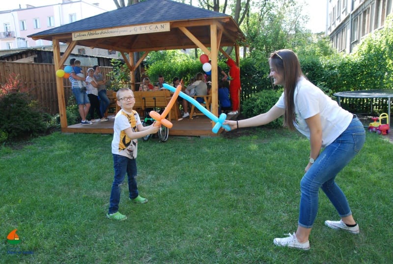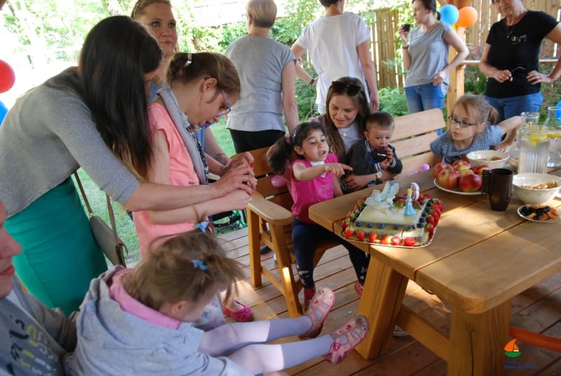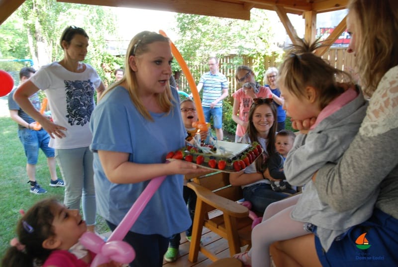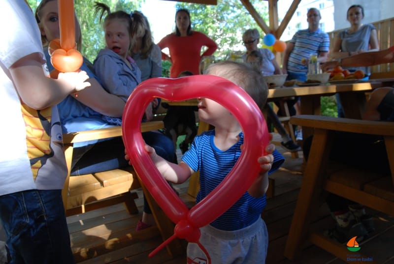 Tutururuuuu… Julianka świętuje! Miała swoje szóste urodzinki. Piękny pretekst do wspólnego śpiewania i zabawy. Pogoda nam dopisała, więc świętowaliśmy w ogrodzie – w gronie domowników i przyjaciół. Pyszny tort bez cukru upiekła nam Pani Ewa, a Wolontariuszki z Fundacji Dzieło Nowego Tysiąclecia zapewniły balonowe atrakcje – wyczarowywały różne kształty: serduszka, pieski i miecze… a jak pojawił się miecze, to i walki rycerskie.